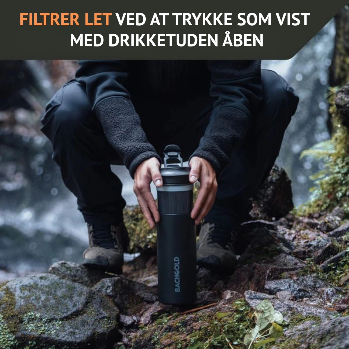 Vandfilterflaske og filtrering gjort enkelt. Nem all-in-one løsning. Renser 3,9 liter i minuttet og filtreret har en kapacitet på 1500 liter og 2500 cyklusser.