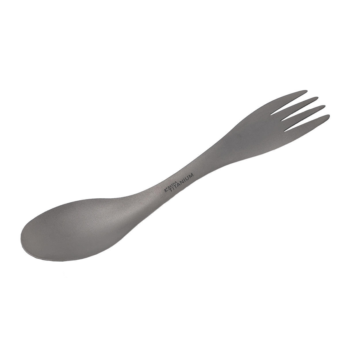 En af de mest populære løsninger, ske og gaffel kombineret i ét bestik. Fremstillet af ekstremt slidstærkt og let titanium. Vejer kun 18gram.
