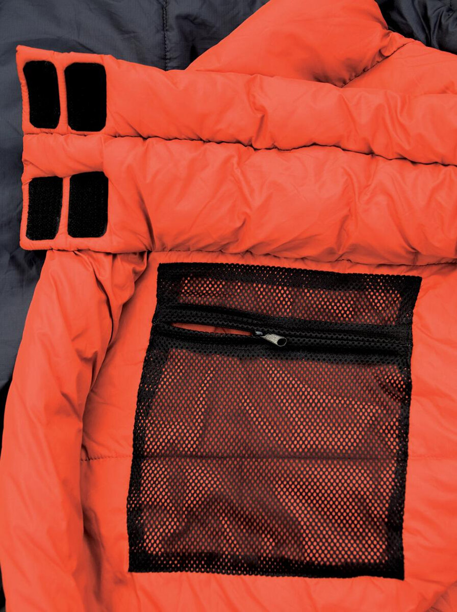 Soveposen er også udstyret med en anatomisk formet hætte, der holder hovedet varmt, og en isoleret åbningstunnel, som forhindrer varmetab. Højkvalitets YKK-lynlåse, udstyret med farvekodede snoretræk og en selvlysende ende, gør det nemt at justere lynlåsen, selv i mørke. Indvendigt finder du en praktisk mesh-lomme, perfekt til opbevaring af småting som en lommelygte, telefon eller andre nødvendigheder.
