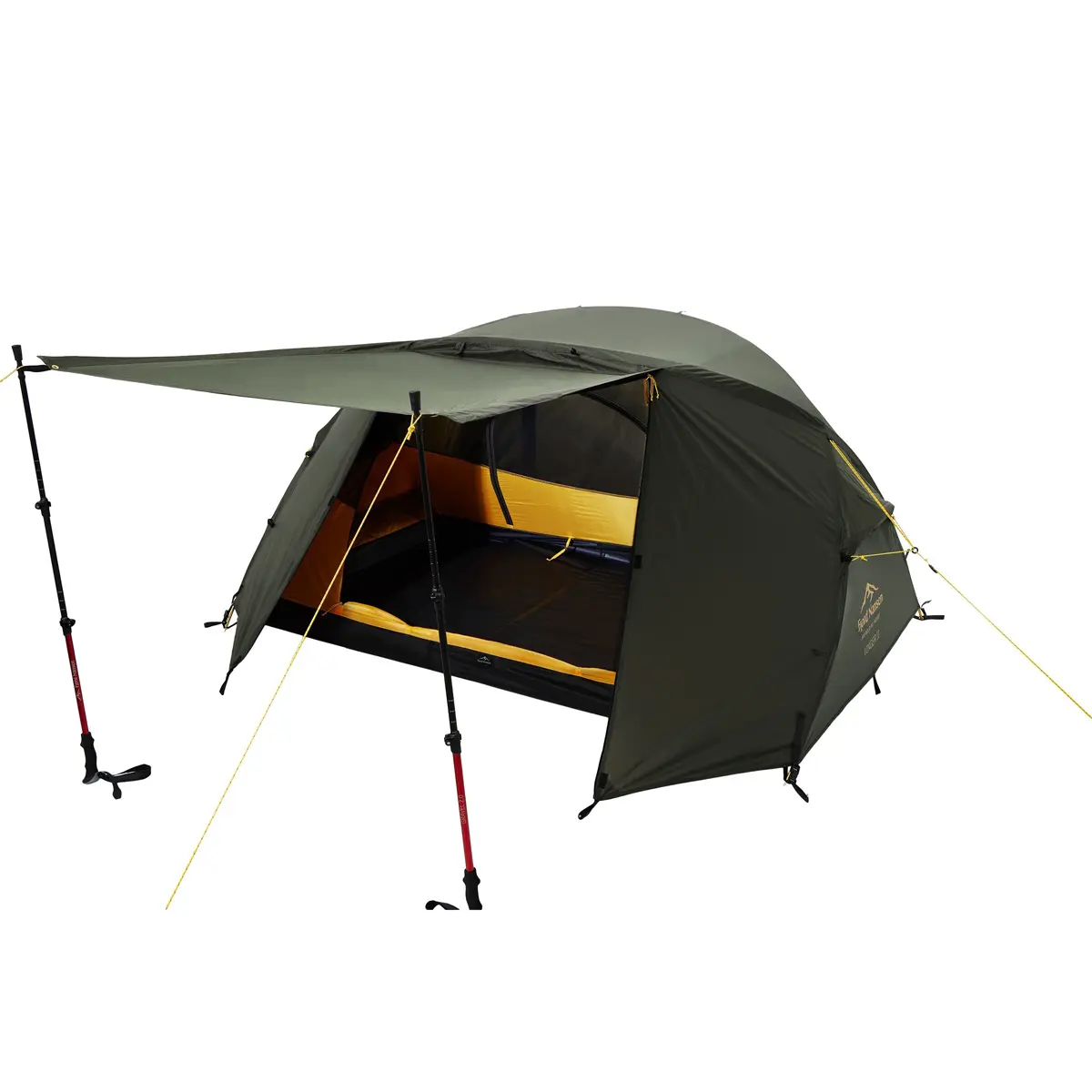 Apsis ved begge indgange kan udvides med trekkingstænger (medfølger ikke), så du nemt kan skabe en lille overdækning. Det beskytter mod sol og regn og skaber ekstra plads til opbevaring eller madlavning i ly for vejret. Det gør teltet ideelt til både rolige skovture og mere krævende fjeldvandringer.