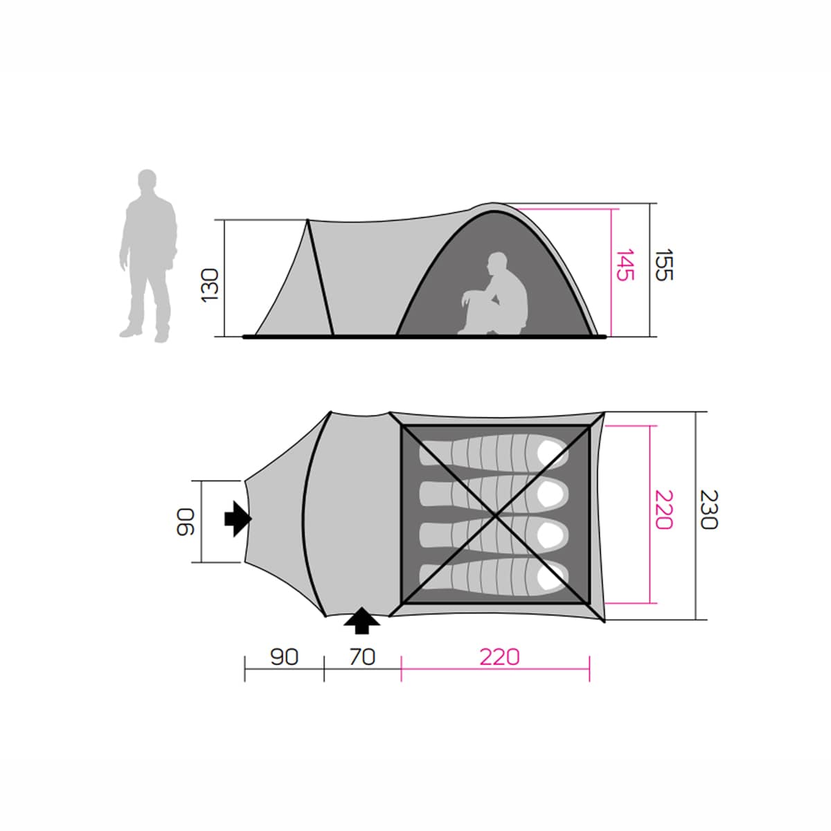 Telt til 4 personer med COOL ROOM teknologi