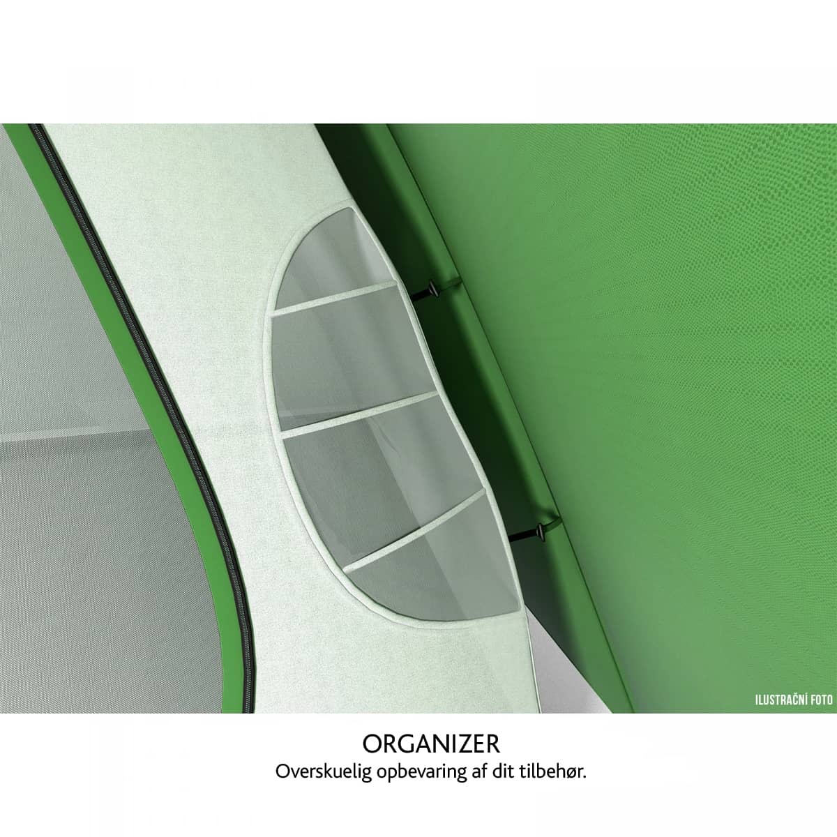 Det har én hovedindgang og én stor apsis, som giver ekstra opbevaringsplads. Hertil en optimal ventilation, så man er sikret en virkelig god komfort som bruger af teltet.
