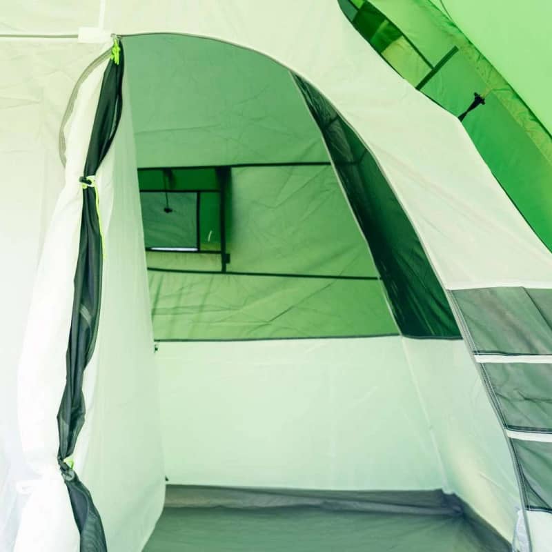 Indvendigt tilbyder teltet behagelig plads til fem personer og deres bagage, hvilket gør det til det perfekte valg for en behagelig og rummelig campingoplevelse.