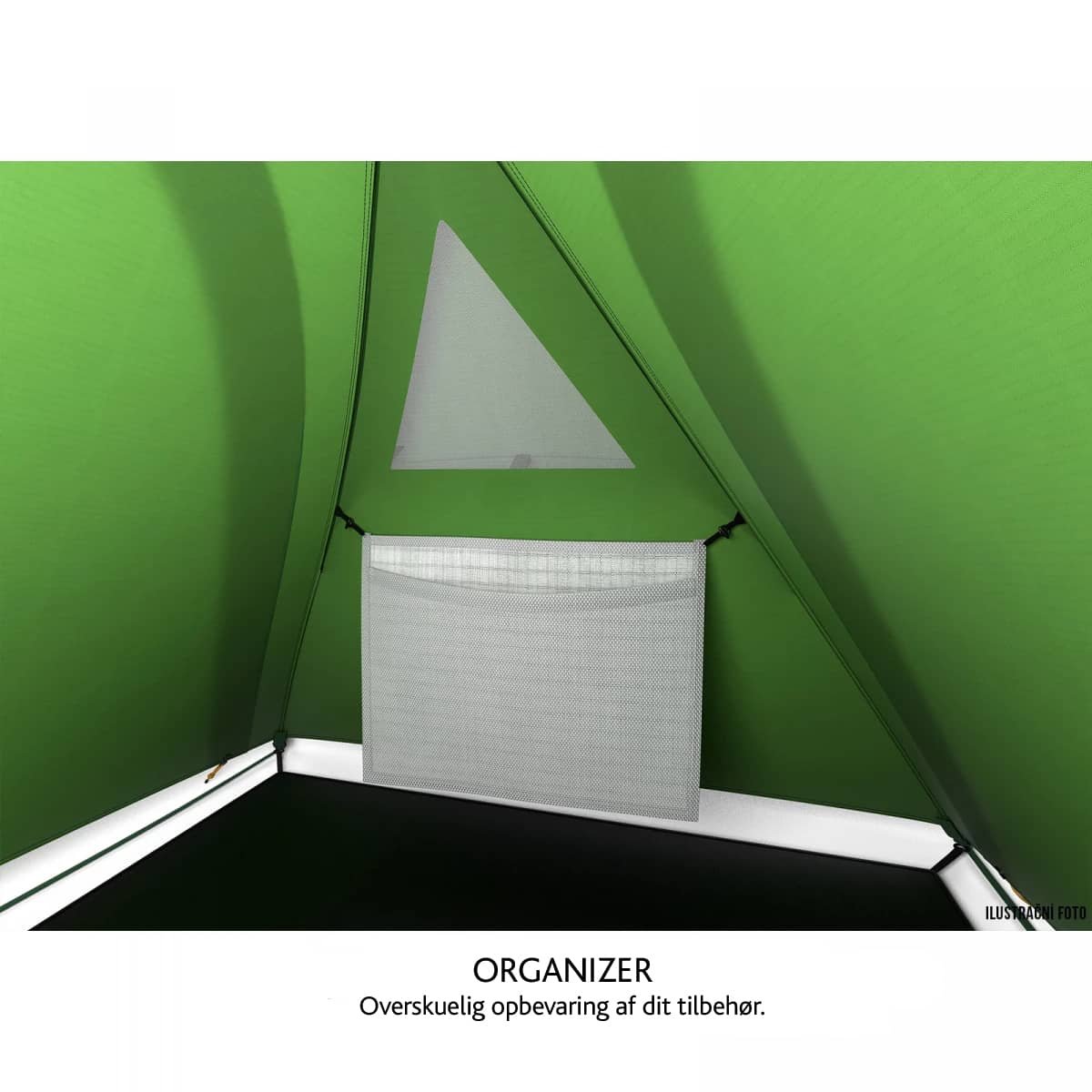 Teltet har to indgange og en rummelig apsis. Hertil en optimal ventilation, så man er sikret en virkelig god komfort som bruger af teltet.
