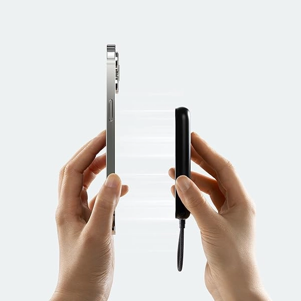 Den er udstyret med indbygget Type-C- og iPhone-kabel, så du nemt kan oplade både Android- og Apple-enheder uden behov for ekstra ledninger. Begge kabler understøtter både input og output for fleksibel brug.
